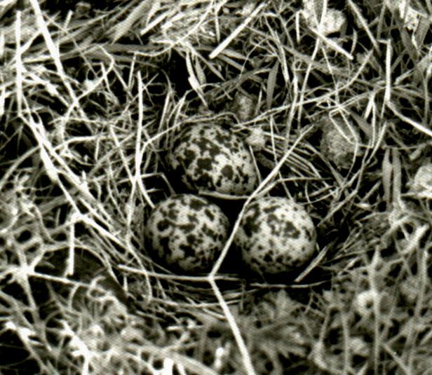 De kievit legt zijn eieren in een kuiltje in het wieland.